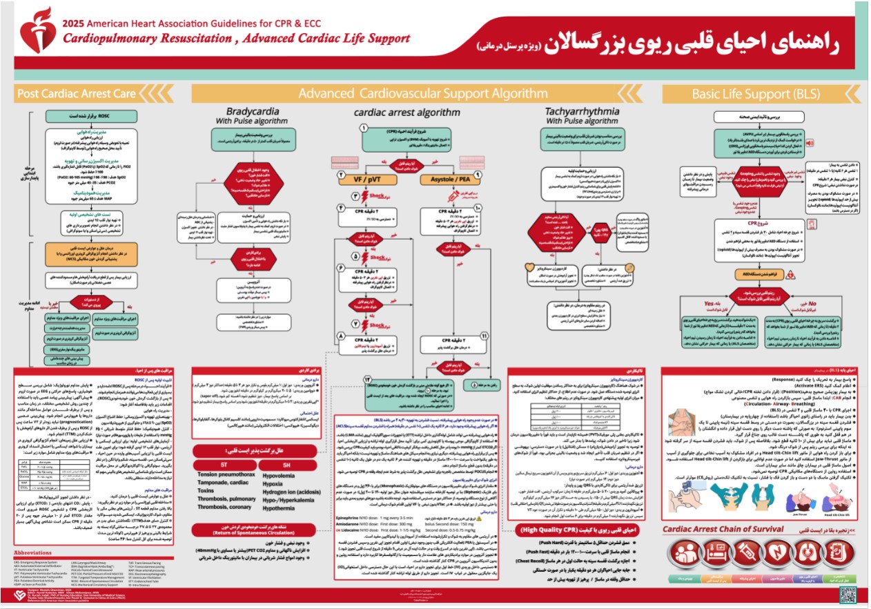 با انتشار آخرین گایدلاین احیای قلبی ریوی 2025 توسط انجمن قلب امریکا (AHA) بر آن شدیم مانند سالهای گذشته پوستری را در این زمینه طراحی و خدمت شما عزیزان عرصه درمان تقدیم کنیم.
