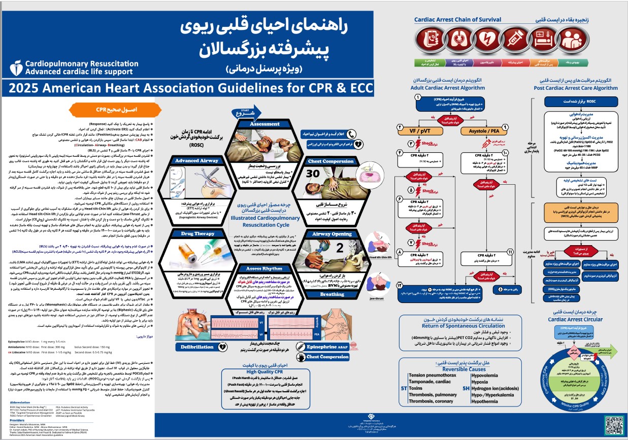 با انتشار جدیدترین گایدلاین احیای قلبی ریوی 2025 توسط انجمن قلب امریکا (AHA) بر آن شدیم مانند سالهای گذشته پوستری را در این زمینه طراحی و خدمت شما عزیزان عرصه درمان تقدیم کنیم.